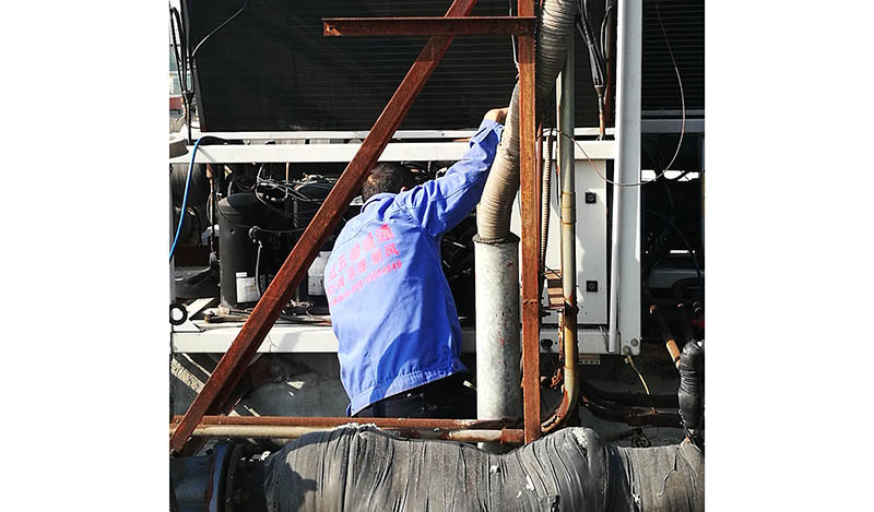 成都中央空調維保成功案例:葛洲壩電力集團,師傅正在認真仔細的查找漏點,有點難度。