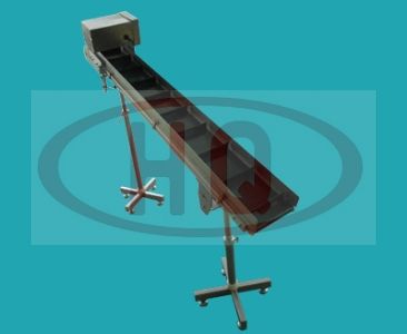 使用34mm鋁合金型材支架,皮帶傳送、驅動。皮帶表面帶30mm高的擋板,可以進行傾斜提升搬運物品,適合搬運形狀不規則的物品。標準配置含護欄??梢愿鶕枰獙Ⅱ寗硬堪惭b到上部或下部。