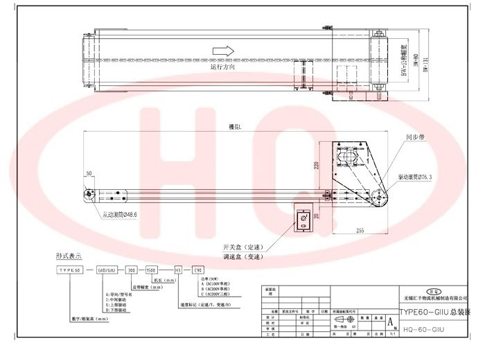 使用強度更高的60mm鋁合金型材支架,皮帶傳送、頭部(或上部)驅動,直線輸送。