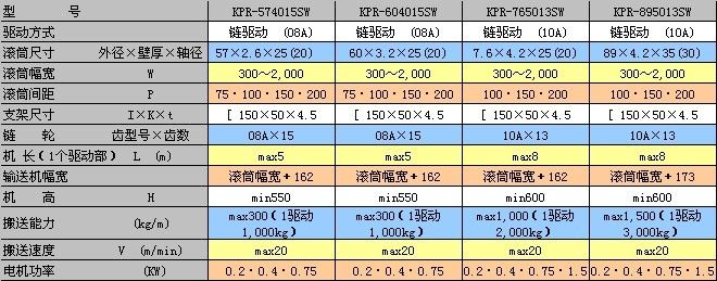 KPR-SW系列驅(qū)動輸送機使用雙排鏈條驅(qū)動,使用大強度的滾筒,適用于搬運大重量物品場合。