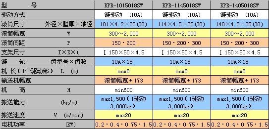 KPR-SW系列驅(qū)動(dòng)輸送機(jī)使用雙排鏈條驅(qū)動(dòng),使用大強(qiáng)度的滾筒,適用于搬運(yùn)大重量物品場(chǎng)合。