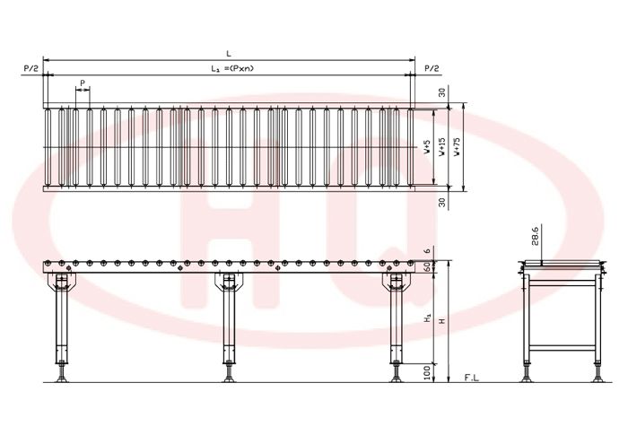| 輸送機幅寬 W+75 (mm) | 175 | 275 | 375 | 475 | 575 | |